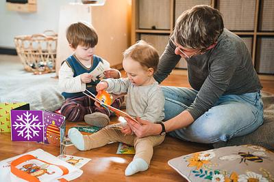 We love the very simple rhyme of this book and the surprise mirror at the end! Babies love to look at other faces and seeing them in photographs like this is a great way for them to start to 'read' facial expressions.