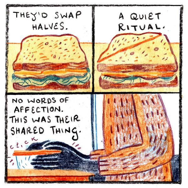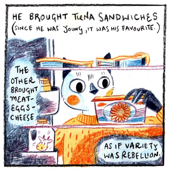 This adaptation of Tuna Sandwiches by Mhairi Kelly has been created for Book Week Scotland by illustrator Candice Purwin.